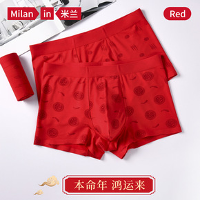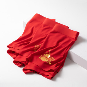 男士内裤平角冰丝本命年大红色属虎抗菌结婚νckο四...