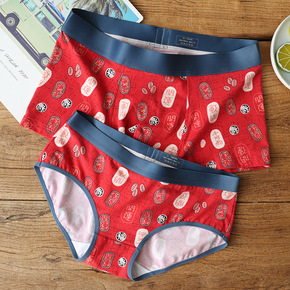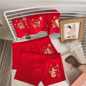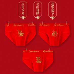 本命年大红内裤结婚喜庆莫代尔棉情侣内裤烫金印花虎年...