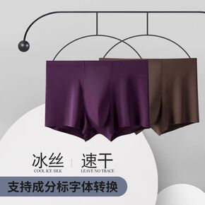 男士冰丝内裤 中腰纯色无痕平角裤薄款透气本命年红内...