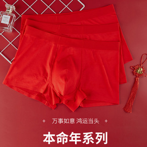 本命年盒装男士内裤中腰透气莫代尔平角裤男红色内裤男...