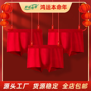 批发本命年透气大红色男士内裤 新年喜庆男款竹纤维中...