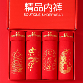盒装4条 纯棉大红男士内裤 纯棉喜庆四角裤 本命年...
