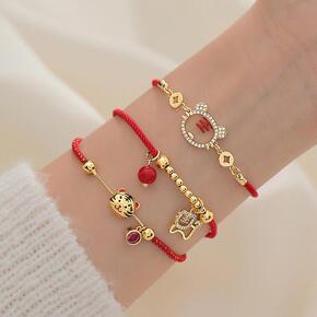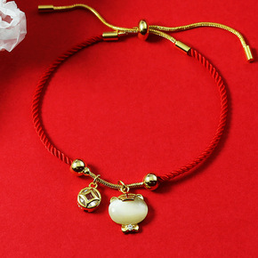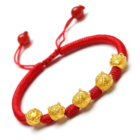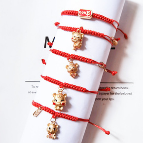 批发本命年鼠年红绳手链女编织简约男金猪新年礼物转运...