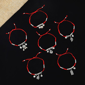 【安年】巴度编织手绳本命年红绳925银珠手链编绳小...
