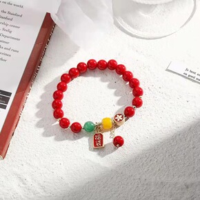 虎年本命年磨砂红珠子手链女转运祈福平安喜庆手串过年...