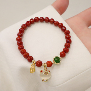 天然南红玛瑙手链手工设计款猫眼石本命年吊坠老虎手串...