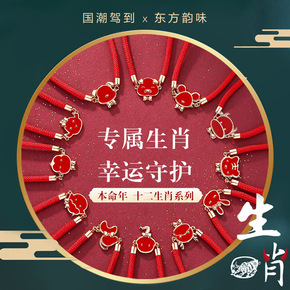 朱砂十二生肖红绳手链女本命虎年化太岁编织手绳男礼物...