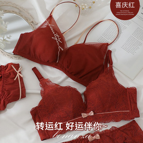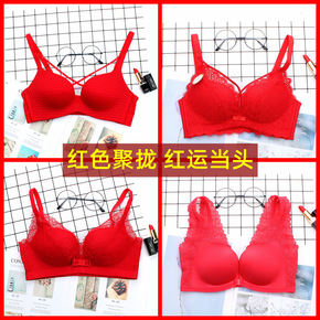 本命年红色文胸虎年结婚内衣女小胸聚拢性感胸罩无钢圈...