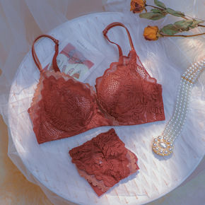 本命年套装性感内衣女士小胸聚拢显大神器薄款收副乳红...