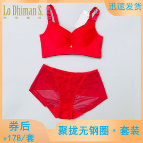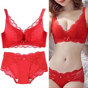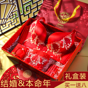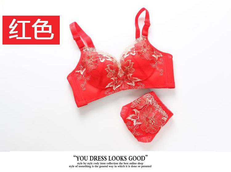 新品大红刺绣红色本命年结婚无痕内衣套装聚拢无钢圈调...