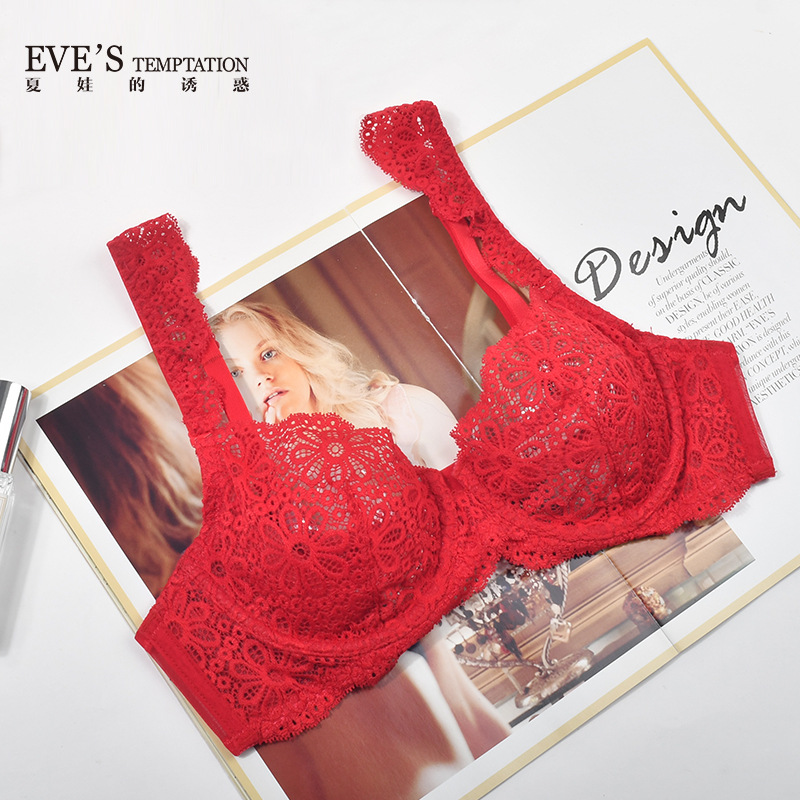 性感超薄款大胸显小DE杯本命年内衣女大码套装胖mm...