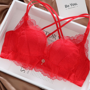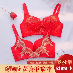 本命年红色内衣女小胸聚拢收副乳防下垂结婚新娘无钢圈...