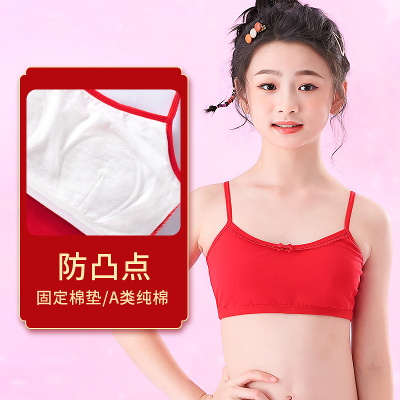 少女红色内衣本命年女大童小学生防凸点小吊带文胸女孩...