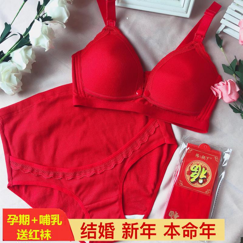 大红色孕妇内衣套装怀孕期纯棉舒适内裤结婚新娘本命年...