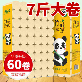 包邮【60卷巨量一年装】12卷竹浆本色卫生纸卷纸批...
