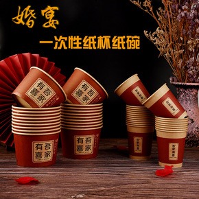 结婚用纸碗加厚本色喜碗婚礼酒席碗筷一次性餐具套装整...