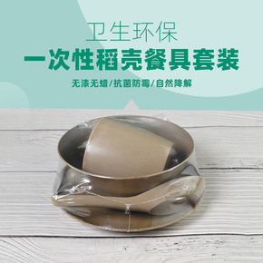 稻壳餐具独立包装一次性碗筷子套装餐具四件套碗杯子勺...