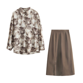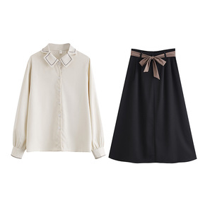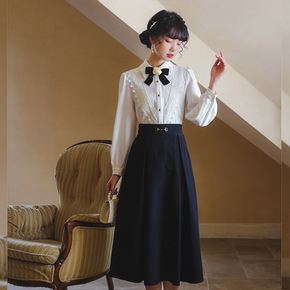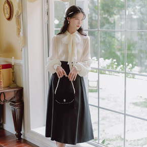 秋季新款女装套装法式文艺雪纺衬衫收腰半身裙面试教资...