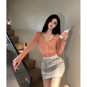 设计感小众辣妹开衫女秋装2021年新款短款显瘦连帽...