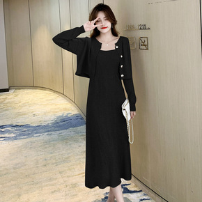 2021早秋新款套装法式毛衣针织超短衫+吊带中长款...