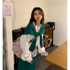 学院风马甲两件套装女秋冬大码胖mm宽松洋气减龄长袖...