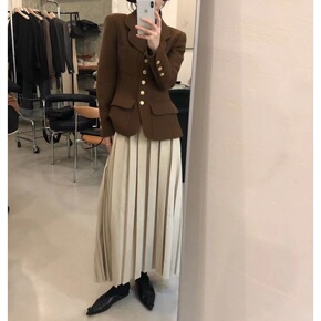 韩国东大秋冬2021新款小香气质赫本风翻领系扣收腰...