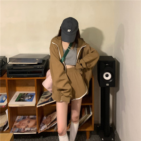 黑色运动外套女春秋季百搭2021新款设计感小个子宽...