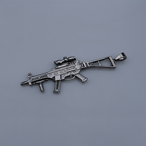 2021跨境新品欧美不锈钢机枪ump军事项链吊坠男...