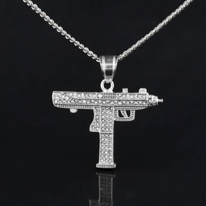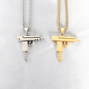 欧美热销朋克嘻哈金银色男士冲锋枪手枪机项链个性潮流...