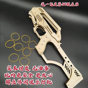 木质连发皮筋枪冲锋枪模型摆件大型皮筋枪非金属发射皮...