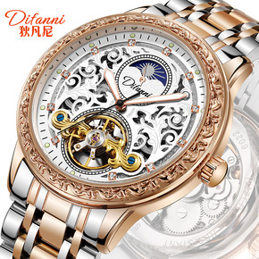 正品狄凡尼全自动机械表快手直播爆款陀飞轮防水夜光男...