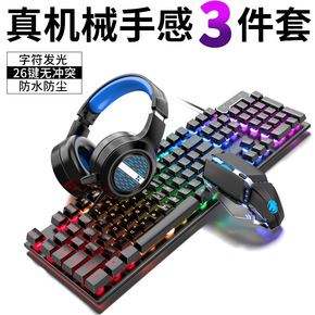 真机械手感键盘鼠标套装耳机键鼠三件套电竞游戏台式有...