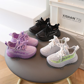 2022春季新款飞织儿童运动鞋男童透气网鞋软底女宝...