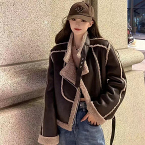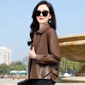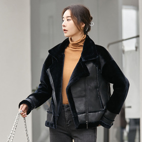 2022秋季新款海宁皮衣女短款绵羊皮机车外套时尚宽...