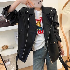 2022原初新款街头风机车夹克皮衣外套女秋冬中长款...
