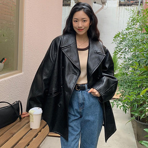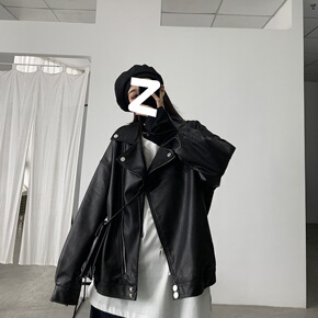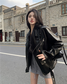 宽松蝙蝠袖港风长袖机车黑色外套女2022时尚韩范酷...