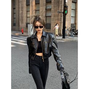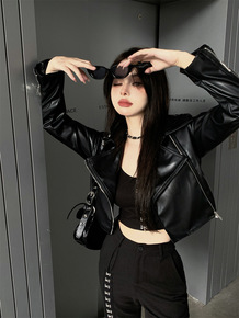 章若楠同款甜酷风短款皮衣外套女早春秋2022新款小...