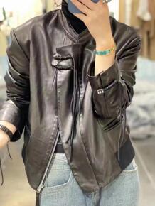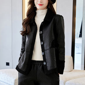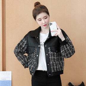 小香风皮外套女短款秋冬新品宽松小个子PU皮机车女皮...