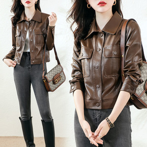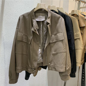 皮衣外套女2022年新款春秋短款韩版宽松复古休闲港...