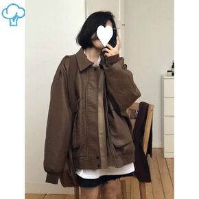 2022秋冬新款港风复古日系皮衣衣外套女皮机车夹克...