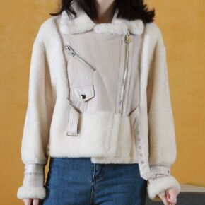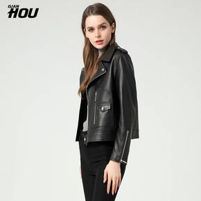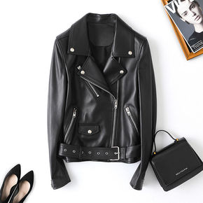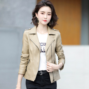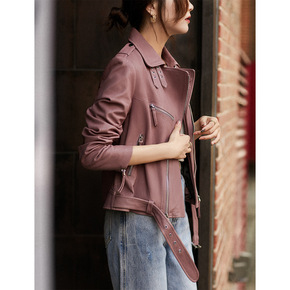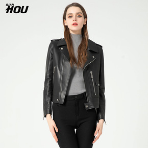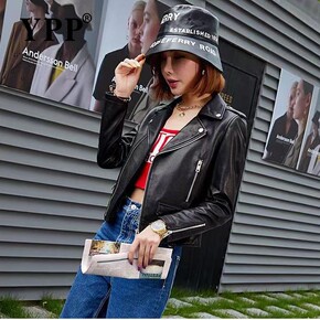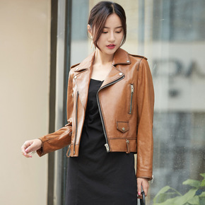 2020春秋女士皮衣短款街头机车风绵羊皮修身显瘦高...