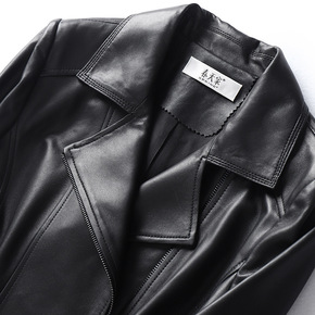 2022春季新款真皮绵羊皮休闲中长款拉链机车夹克外...