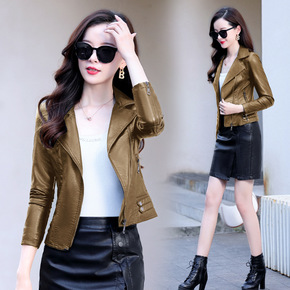 品质保证皮衣女短款水洗pu皮夹克2021春秋长袖修...