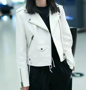 欧货2021新款高端大牌真皮绵羊皮拉链腰带翻领机车...