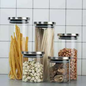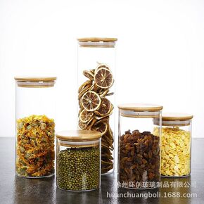 批发直筒玻璃密封瓶收纳瓶储物罐厨房杂粮分装瓶螺口蜂...