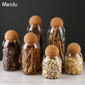 玻璃储物罐茶叶罐 密封木塞玻璃罐 咖啡豆干果存储罐...