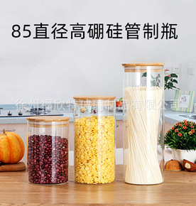 厂家现货85mm高硼硅管制瓶直口耐高温密封储物罐透...