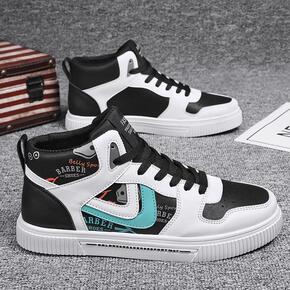 鸳鸯球鞋男冬季2021新款涂鸦运动鞋子男潮鞋高筒学...