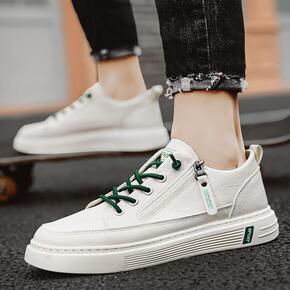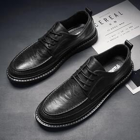 男鞋新款户外运动透气板鞋真皮男士百搭英伦韩版软底潮...