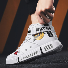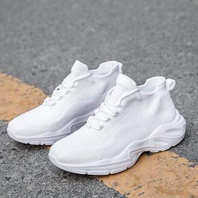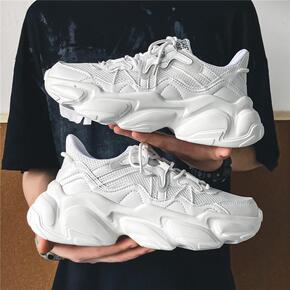 秋季小白鞋休闲运动高帮鞋男厚底老爹鞋网面篮球跑步鞋...